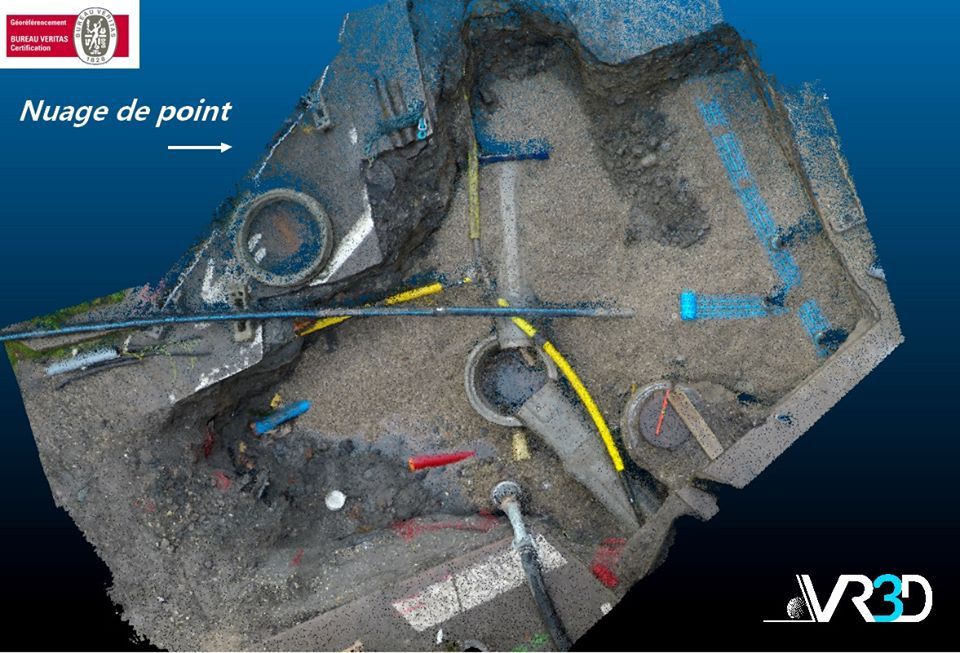 Exemple concret d'un nuage de points 3D d'un chantier de réseaux humides avec multi-réseaux. Facilité vos relevés en contactant VR3D RESO via le site internet dédié : www.vr3d-reso.fr